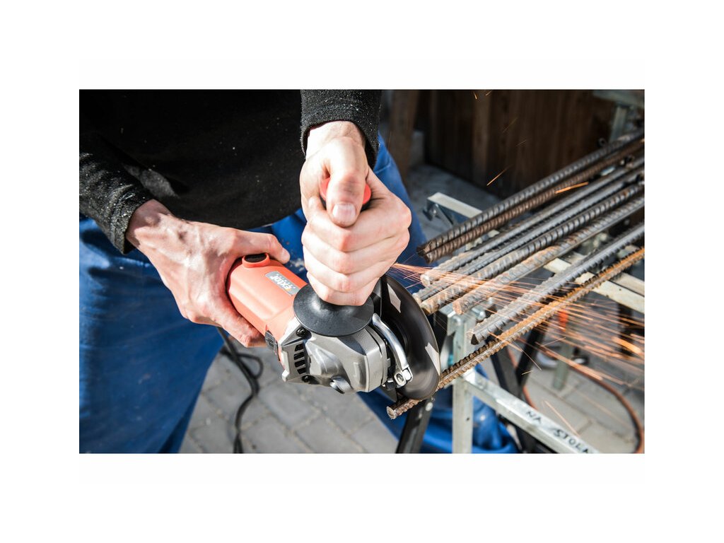 Parametre: príkon 850W, priemer 125mm, voľnobežné otáčky 11000 min -1, bezpečnostný spínač, polohovateľná rukoväť.