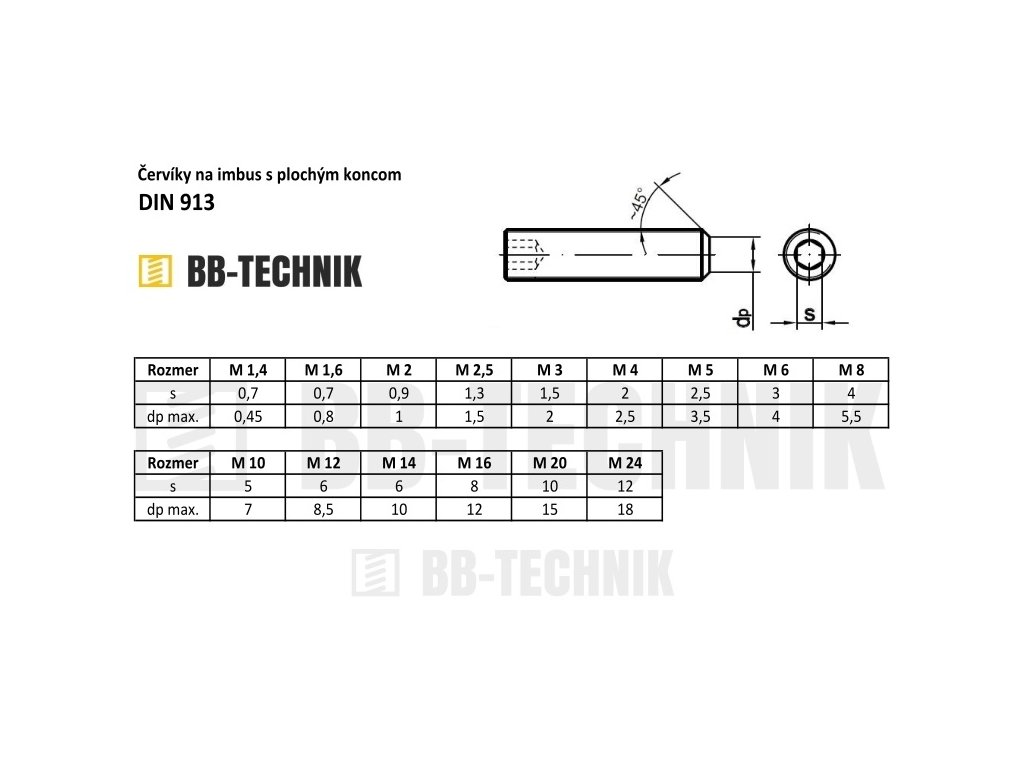 Kategória: | Červíky s plochým koncom DIN 913 |