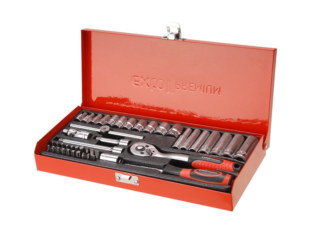 EXTOL Hlavica 1/4" SADA 45-dielna kovový kufrík CrV