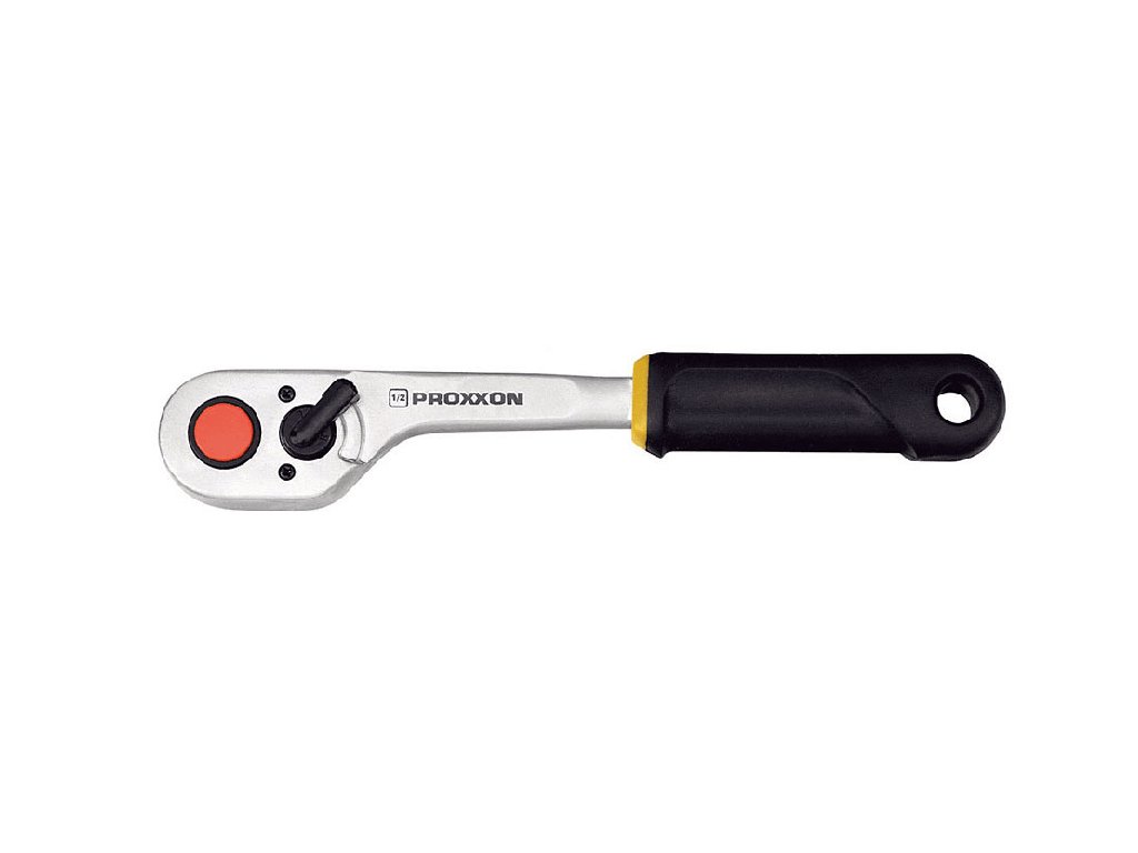 Pre prenos veľkého uťahovacieho momentu, pri uťahovaní je v zábere vždy súčasne niekoľko z 72 zubov račne. Prepínacia páčka pre spätný chod. Tlačidlo pre rýchle uvoľnenie hlavice. Hlava a telo je vykuté z jedného kusu CrV ocele. Povrch je chránený dvojitou vrstvou chrómu. Rukoväť je z odolného neoprénu, odolného voči olejom a kyselinám a má praktický otvor umožňujúci zavesenie.