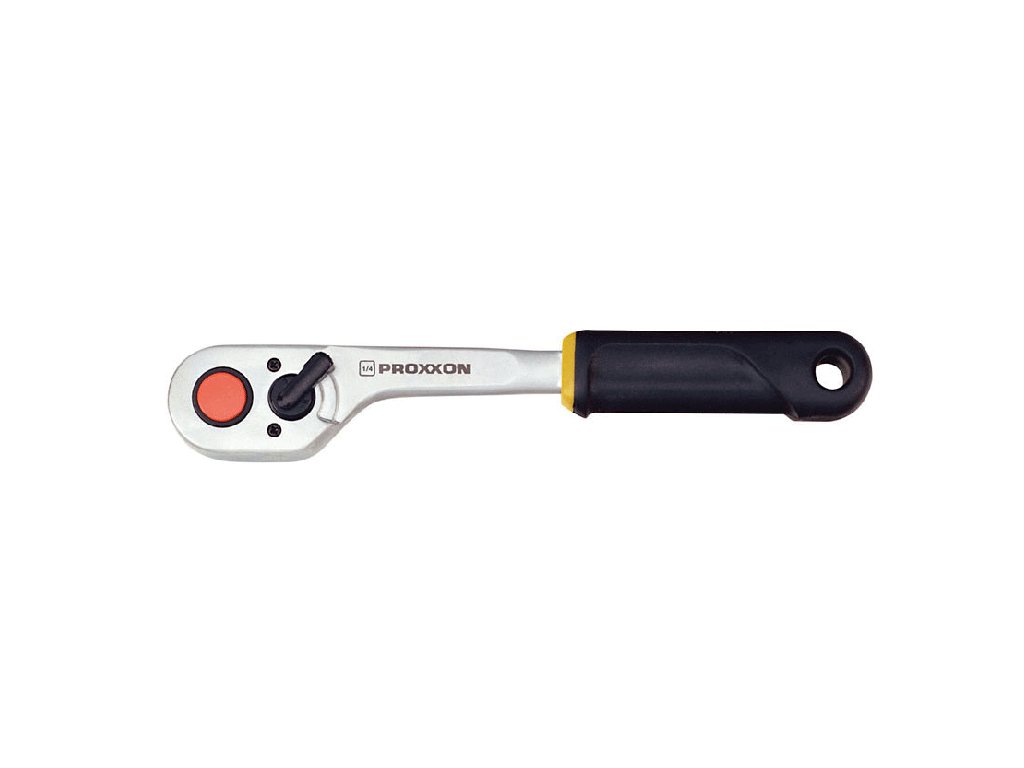 Pre prenos veľkého uťahovacieho momentu, pri uťahovaní je v zábere vždy súčasne niekoľko z 72 zubov račne. Prepínacia páčka pre spätný chod. Tlačidlo pre rýchle uvoľnenie hlavice. Hlava a telo je vykuté z jedného kusu CrV ocele. Povrch je chránený dvojitou vrstvou chrómu. Rukoväť je z odolného neoprénu, odolného voči olejom a kyselinám a má praktický otvor umožňujúci zavesenie.