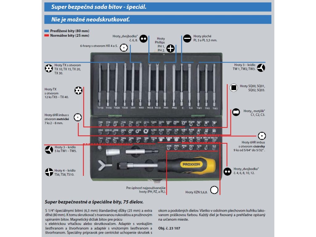 PROXXON špeciána sada bezpečnostných bitov 75-dielna