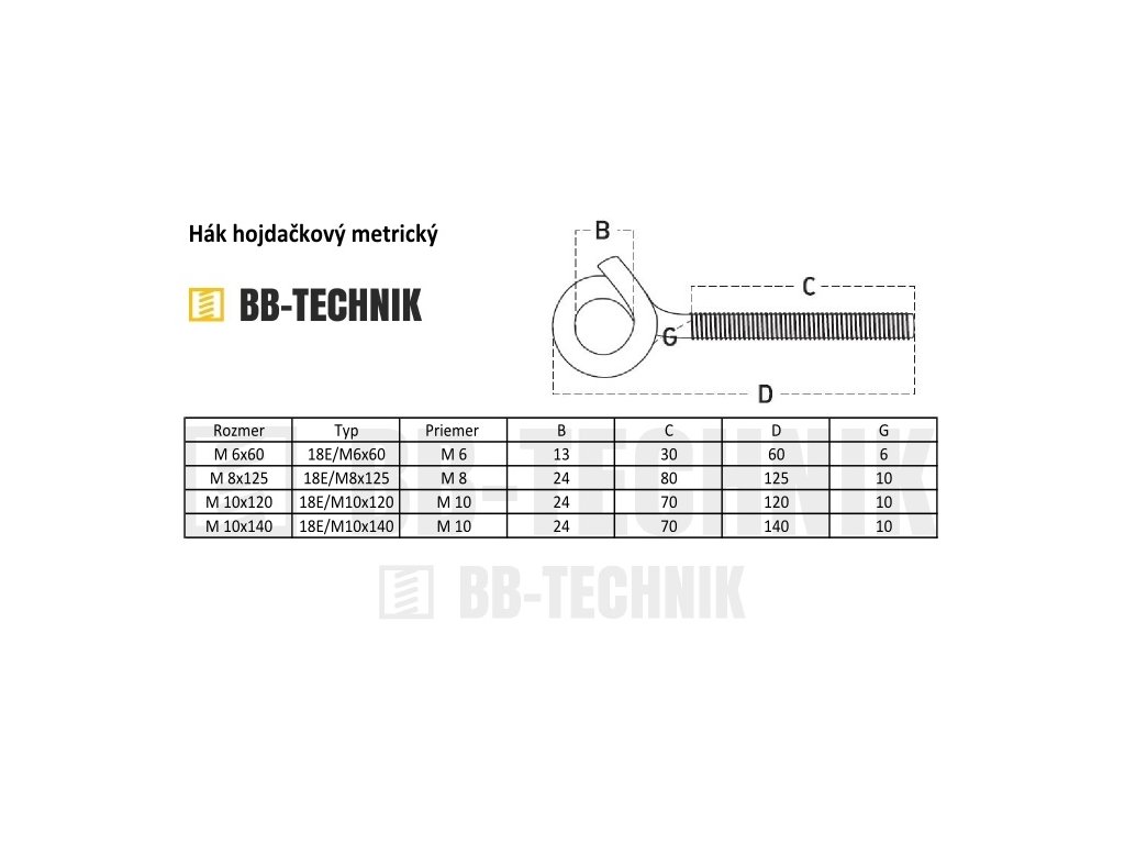 Hák hojdačkový 18E/M 10x120 ZN metrický
