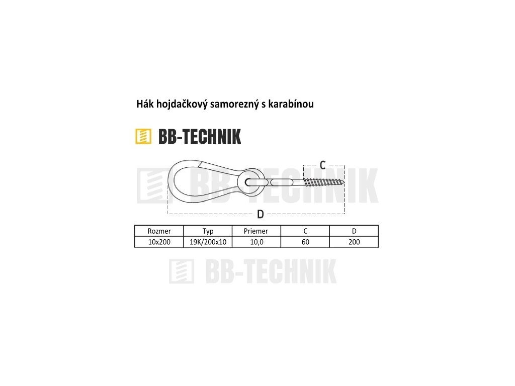 Hák hojdačkový 19K/200x10+karabina samorezný