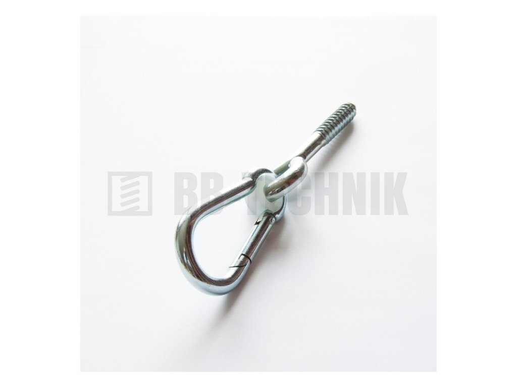 Hojdačkový hák so samorezným závitom a karabínou na zavesenie hojdačky má v karabíne osadený prstenec z nylonu pre zníženie trenia a oderu karabiny pri hojdaní. Hák je určený na montáž priamo do dreva, alebo hmoždiny.
