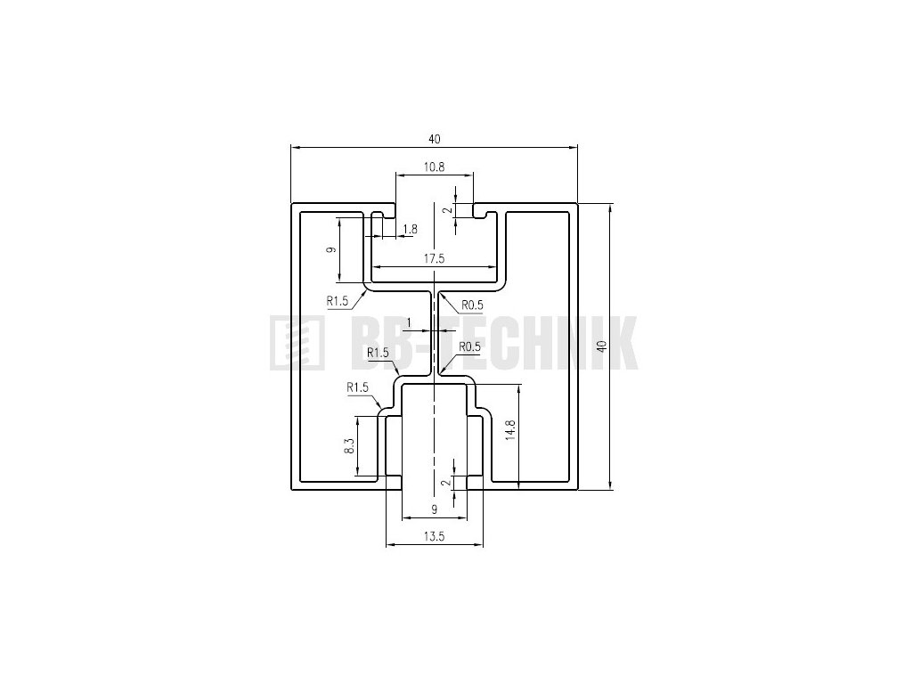 Hliníkový profil pre fotovoltiku 40x40x3300 mm neeloxovaný
