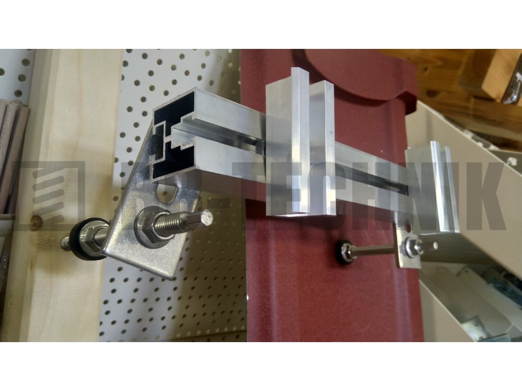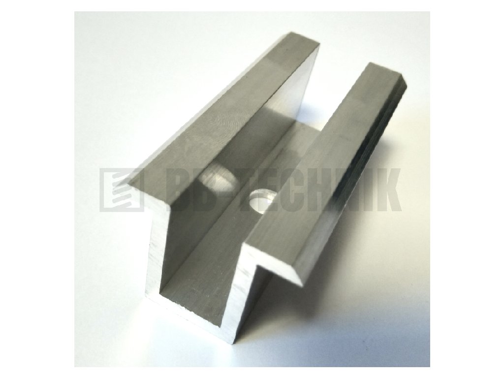 Hliníkový úchyt sa používa na vymedzenie a ukotvenie solárnych panelov vedľa seba. Prichytávajú sa skrutkami DIN 912 A2 a maticami DIN 557 M 8 A2, ktoré slúžia ako bežec v hornej drážke panela.