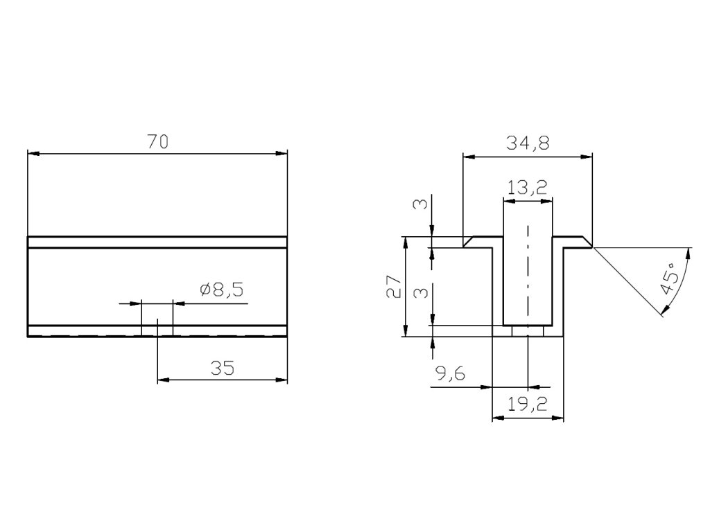 Úchyt stredový pre fotovoltiku 70 mm výška 27mm