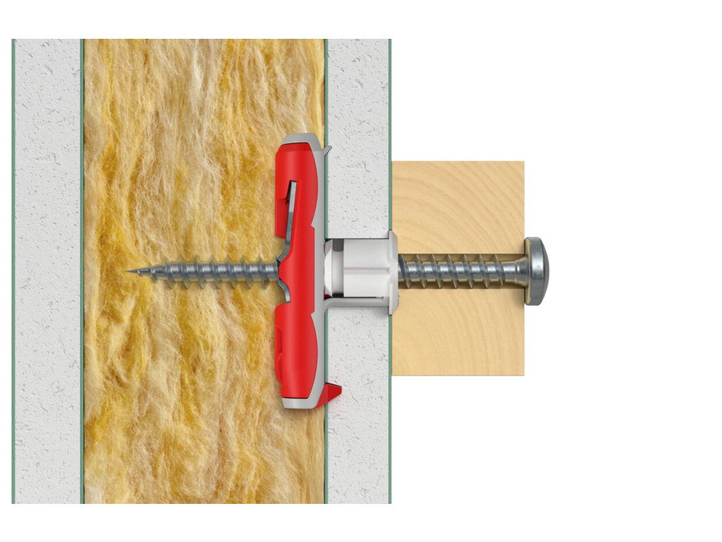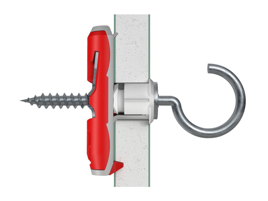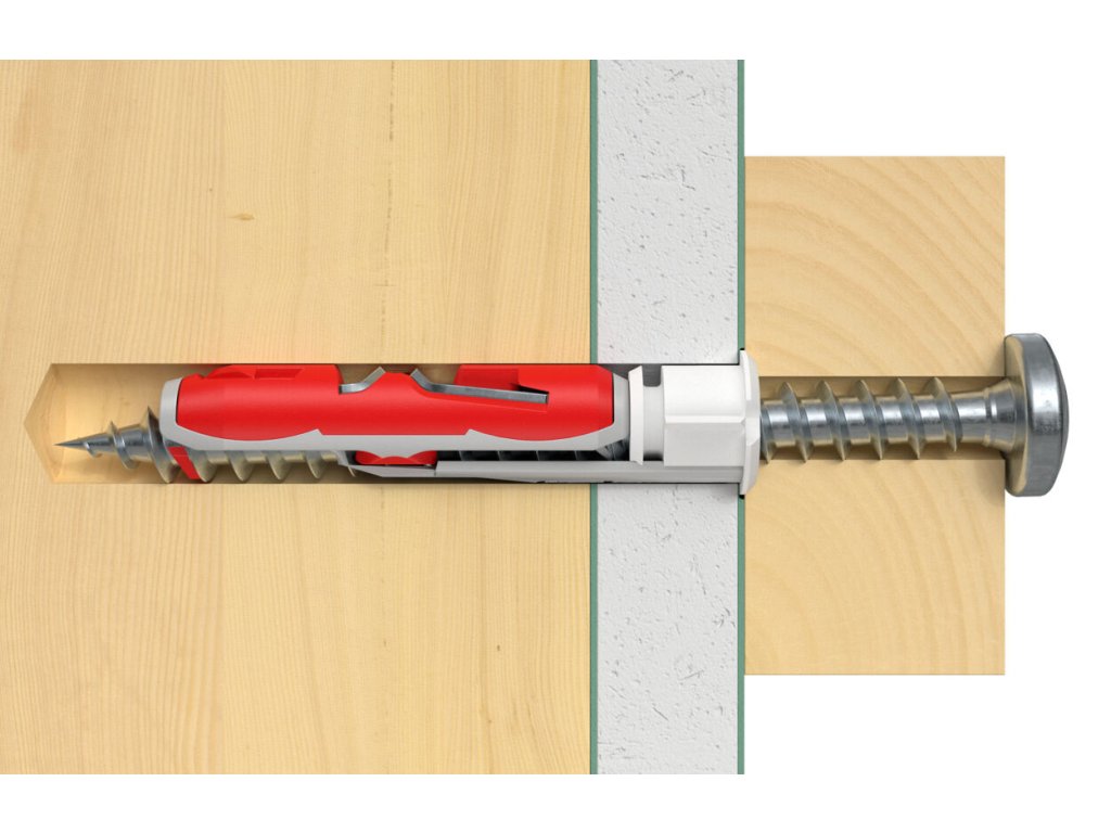 Hmoždiny Fischer DUOTEC sú inovatívne hmoždiny vyrobené z dvoch rôznych materiálov. Červená časť s tvrdeného nylonu roznáša zaťaženie rovnomerne na styčnej ploche, zatiaľ čo šedá mäkšia časť predchádza poškodeniu krehkého povrchu sadrokartónu, ktoré vedie ku jeho oslabeniu a strate únosnosti.