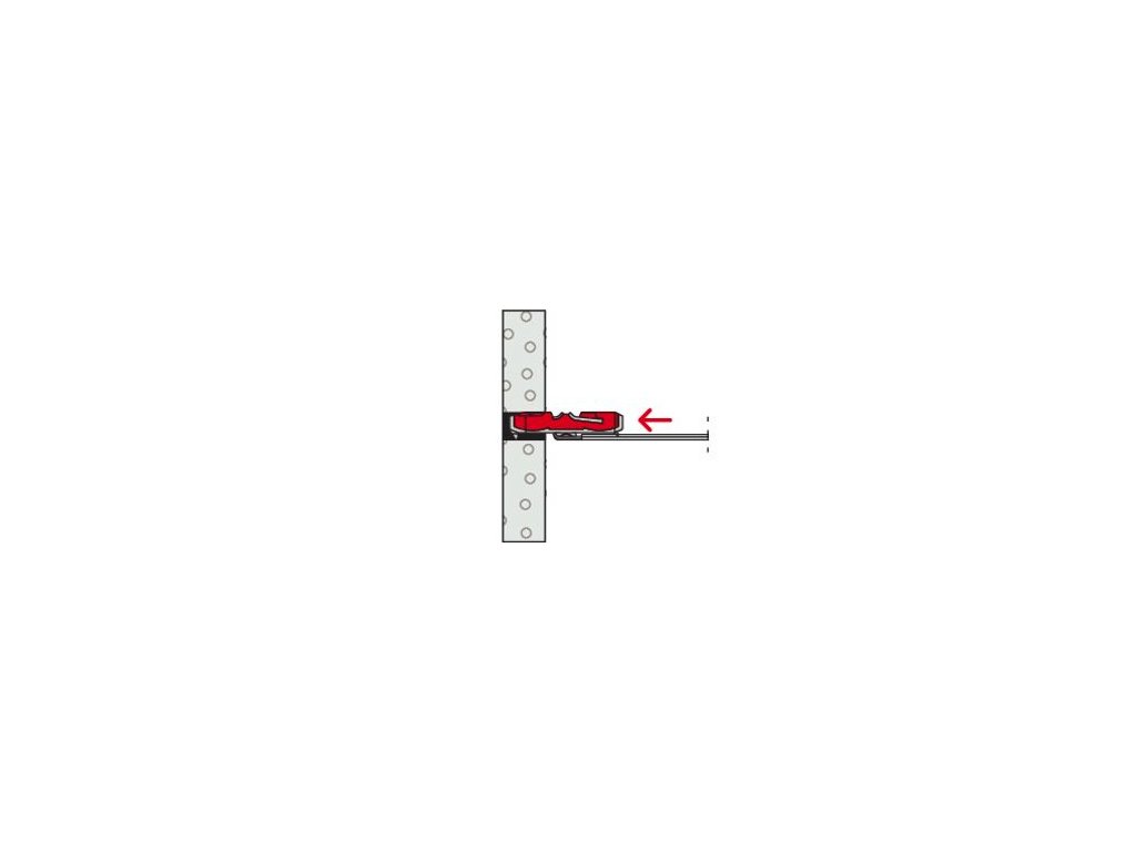 Hmoždina Fischer DuoTec sa montuje ľahko ako sklopná hmoždinka, ale v núdzi ju môžete použiť aj ako rozpernú hmoždinku do plného materiálu. čo zaručuje vysoké hodnoty zaťaženia a optimálne ukotvenie hmoždinky do rôznych typov podkladu.