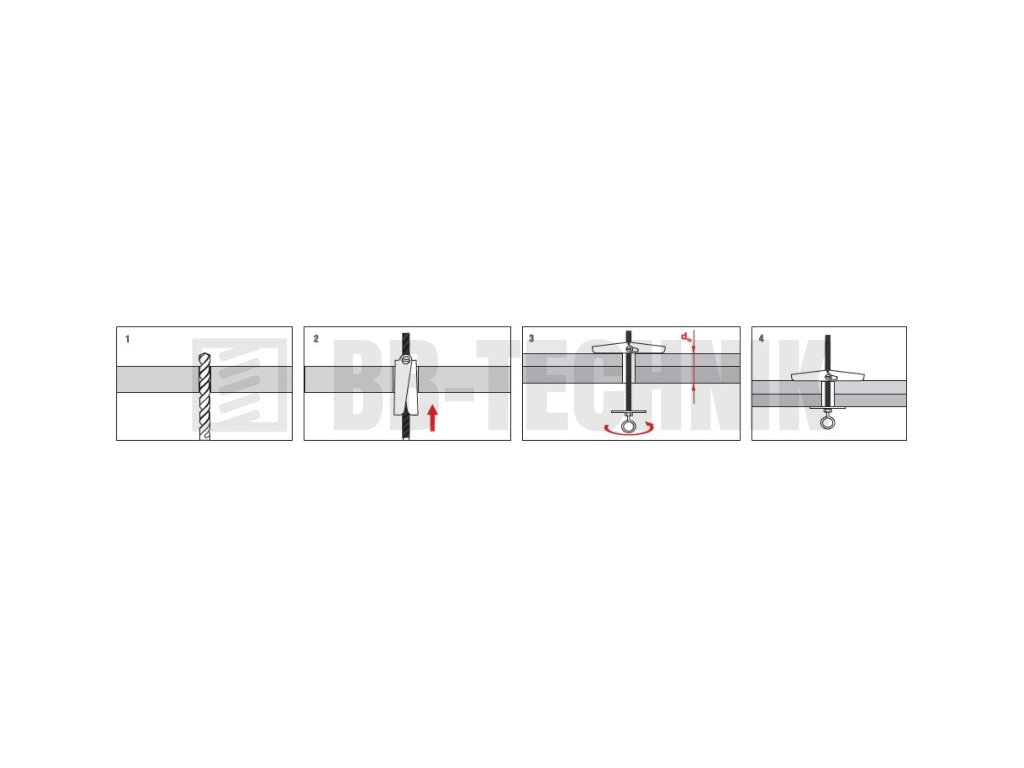 Sklopná pružinová kotva sa používa pri systémoch suchej výstavby ako sadrokartón.