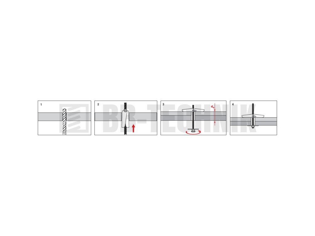 Sklopná pružinová kotva sa používa na uchtenie materiálu k sadrokartónovým doskám.
