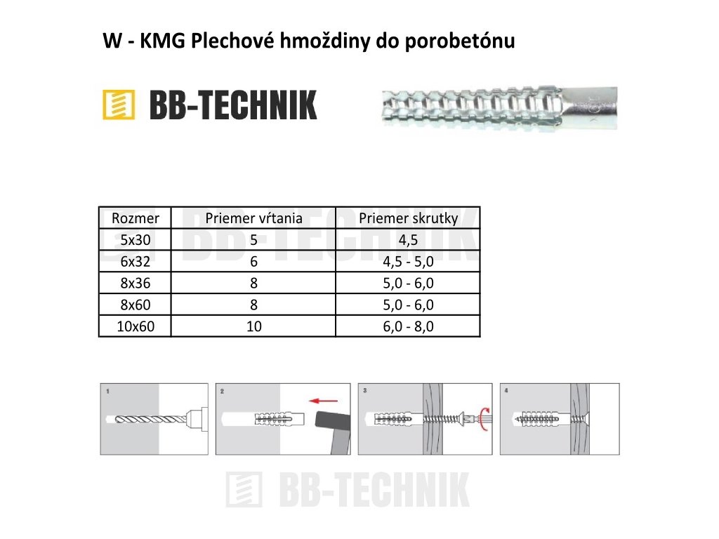 W KMG 10x60 plechová hmoždina do pórobetónu