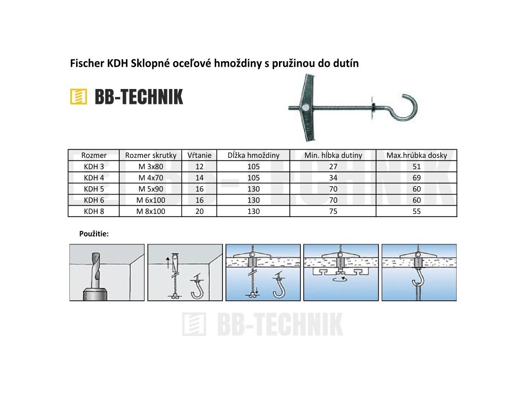 Sklopné hmoždiny Fischer KDH majú sklopné krídelká, ktoré sa po prevlečení dierou roztvoria v dutine. Hmoždiny sú vhodné na montáž cez sadrokartón.