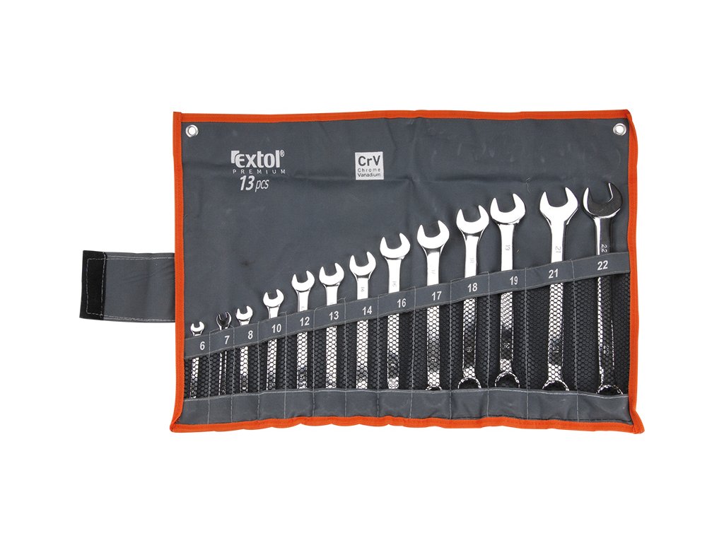 EXTOL Kľúč očko-plochý leštený SADA 13-dielna CrV 6-22mm