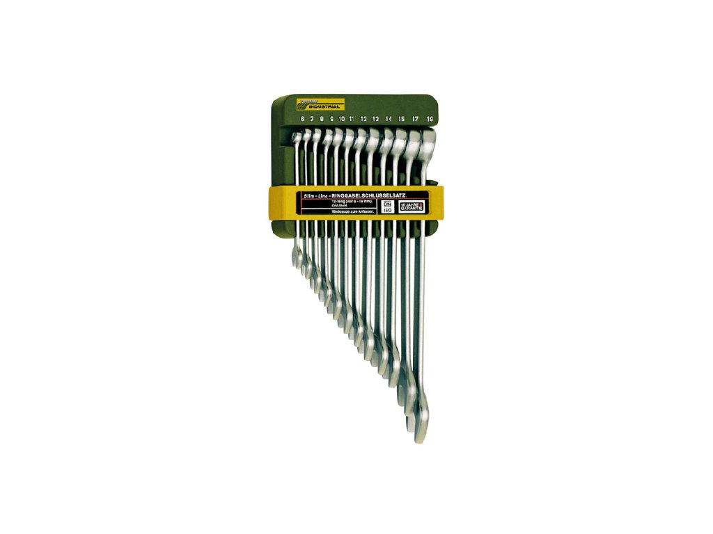 Rozmery kľúčov: 6 – 7 – 8 – 9 – 10 – 11 – 12 – 13 – 14 – 15 – 17 a 19 mm. Dodávané s plastovým držiakom s miestom pre každý kľúč a s otvorom na zavesenie.