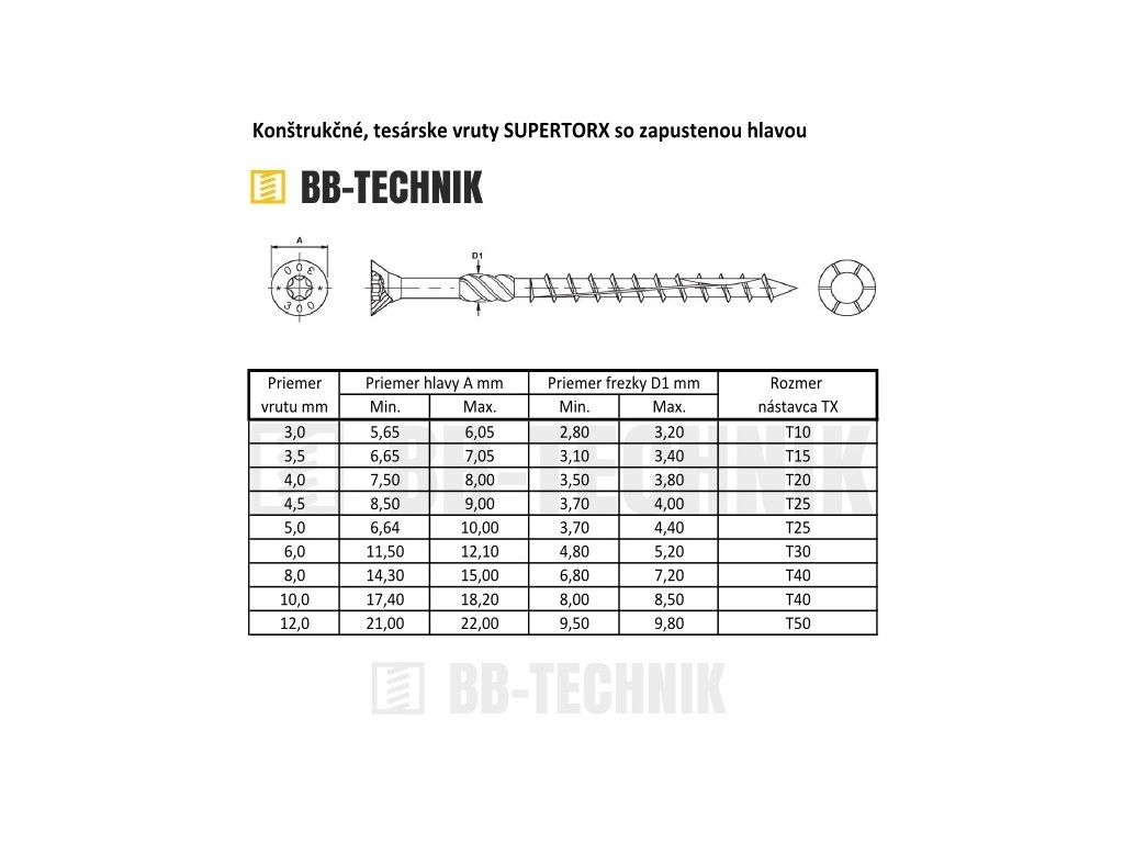 Kategória: | Konštrukčné vruty SUPERTORX |