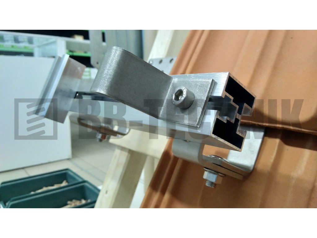 Uholník je určený na uchytenie vonkajších stien krajných solárnych panelov k profilom. Uchytáva sa pomocou imbusových skrutiek DIN 912 A2 a štvorcových matíc DIN 557 M 8 A2, ktoré sa vložia do vrchnej časti profilu. Je odolný voči poveternostným podmienkam.