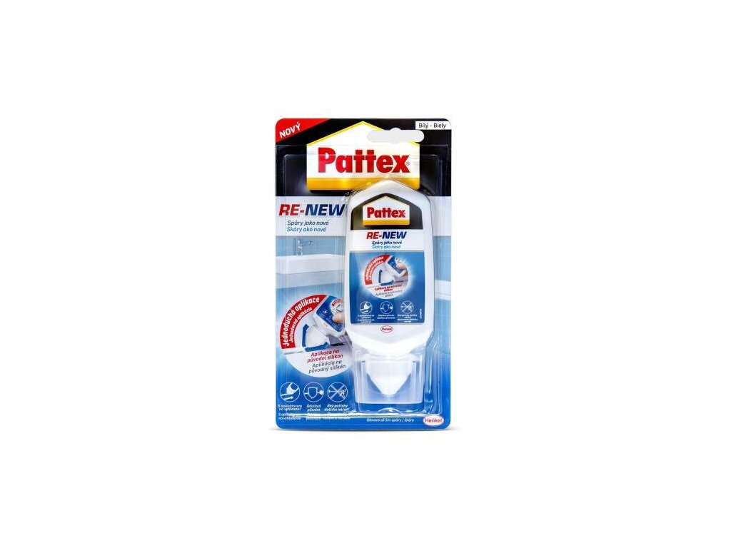 Pattex ReNew obnovovač silikónu je pripravený na priame použitie na prekrytie silikónu s vysokou odolnosťou proti vzniku plesní. Je vhodný na prekrytie pôvodných silikónových tmelov v trojuholníkových spojoch pre zlepšenie ich vzhľadu (krytie farby/formy, plnenie malých trhlín, prekrytie plesnivých škvŕn a podobne). Pattex Re-New vytvrdzuje pri izbovej teplote na elastickú, dlhotrvajúcu silikónovú vrstvu s dlhou životnosťou. Je naplnený v tube novej generácie, ktorá umožňuje dôkladné vytlačenie obsahu a tiež udržanie rovnomerného tlaku počas celej aplikácie.