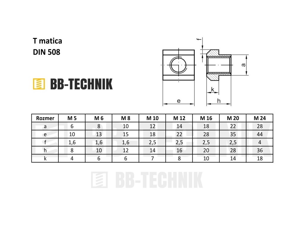 Matica do T drážky DIN 508.