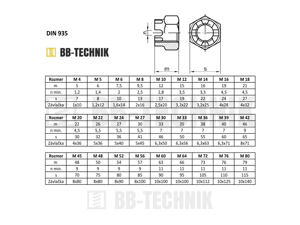 Korunkové matice podľa normy DIN 935 sa v kombinácii so závlačkami používajú na zaisťovanie proti povoleniu. Štandardné korunkové matice máme skladom v celej rozmerovej rade.