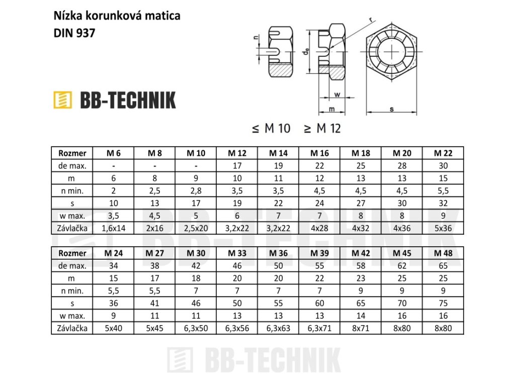 Kategória: | Matice korunkové nízke DIN 937 |