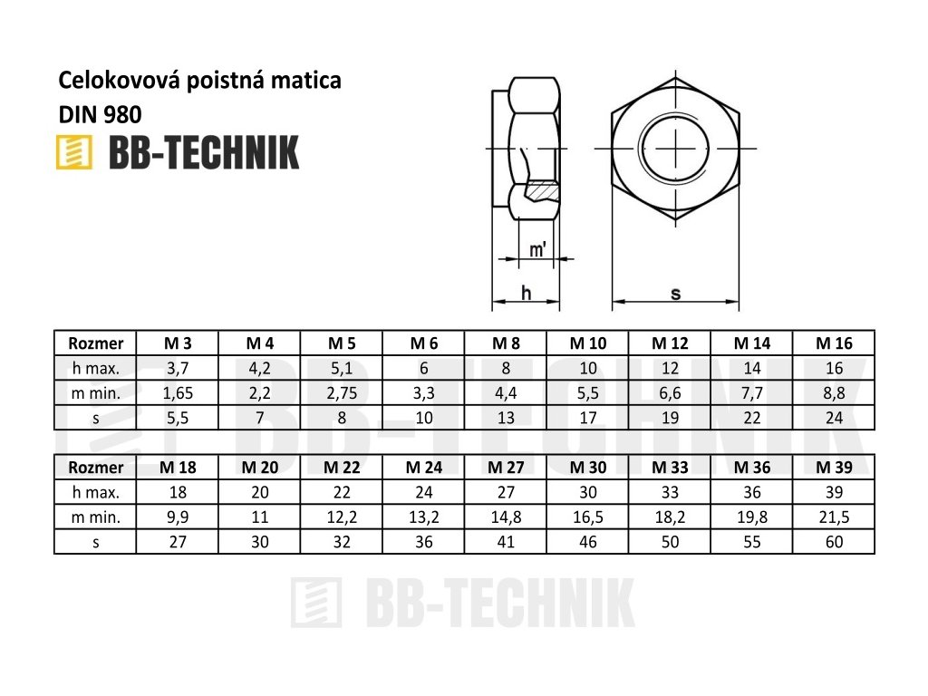 Celokovové poistné matice DIN 980V sa používajú v priemyselnom odvetví, kde sú vyššie nároky na tepelnú odolnosť matice.
