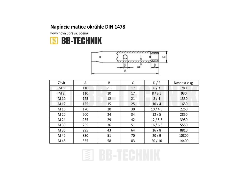 DIN 1478 M 12x125 ZN-SP napínacia matica kruhová