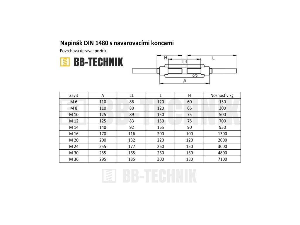 DIN 1480 M 10x125 ZN napínák s navarovacími svorníkmi