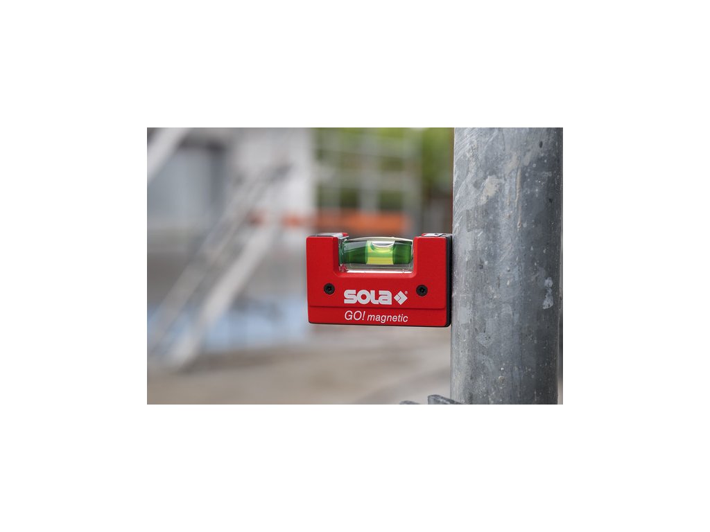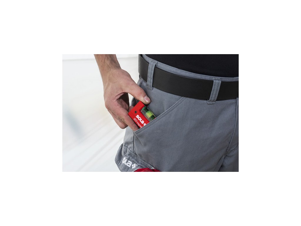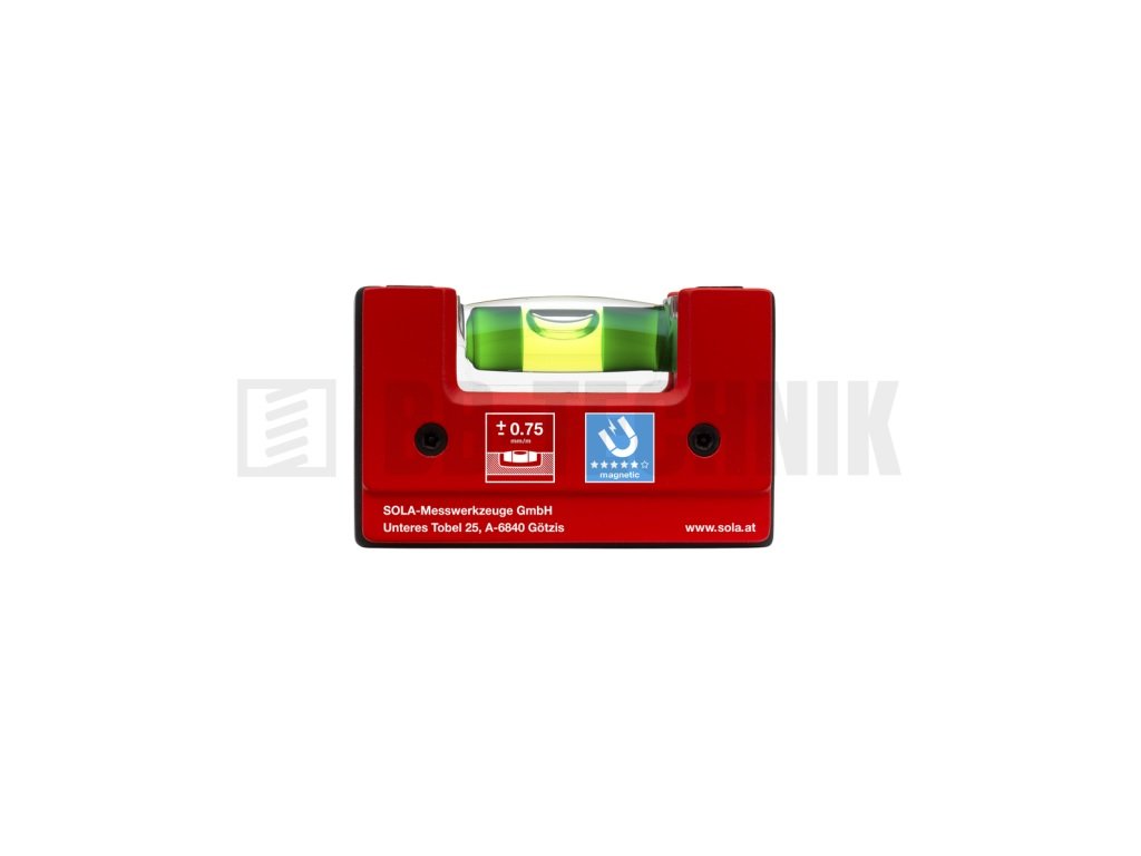 Kvalitná vodováha od výrobcu SOLA. Vrecková magnetická vodováha SOLA má silný neodýmový magnet a kompaktné libely z nerozbitného akrylového skla, so špeciálnou zväčšovacou šošovkou +60% a 30 ročnou zárukou na tesnosť. Libela je dobre čitateľná za šera, kvôli optimalizovanému svietivému povrchu. Meracia plocha má V drážku pre meranie na trubkách a rúrach.