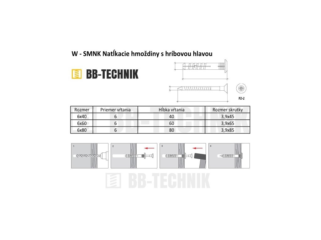 SMNK 6x40 natĺkacia hmoždina s hríbovou hlavou