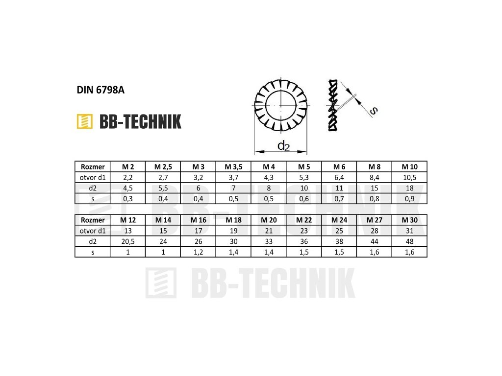 DIN 6798A M 12 A2 nerezová vejárová podložka