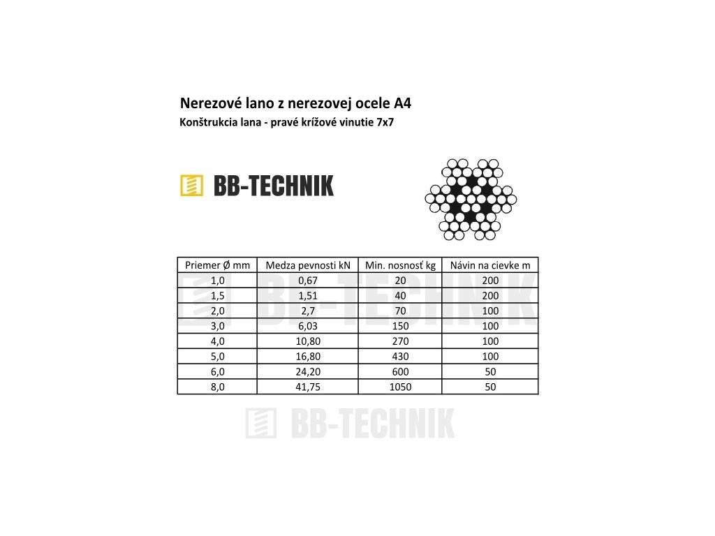 Nerezové laná sú vyrobené z kvalitnej nereze triedy A4 a používajú sa tam kde je potrebná vysoká odolnosť voči korózii, vo vonkajšom prostredí a tiež pri použití v bazénoch alebo v morskej vode. Nerezové laná majú tiež estetickú funkciu a často sa používajú ako výplne zábradlí.