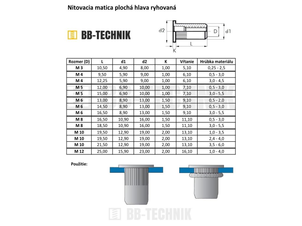 Nitovacia matica M 10 oceľ ZN plochá ryhovaná pre hrúbku materiálu 1,0-3,5mm