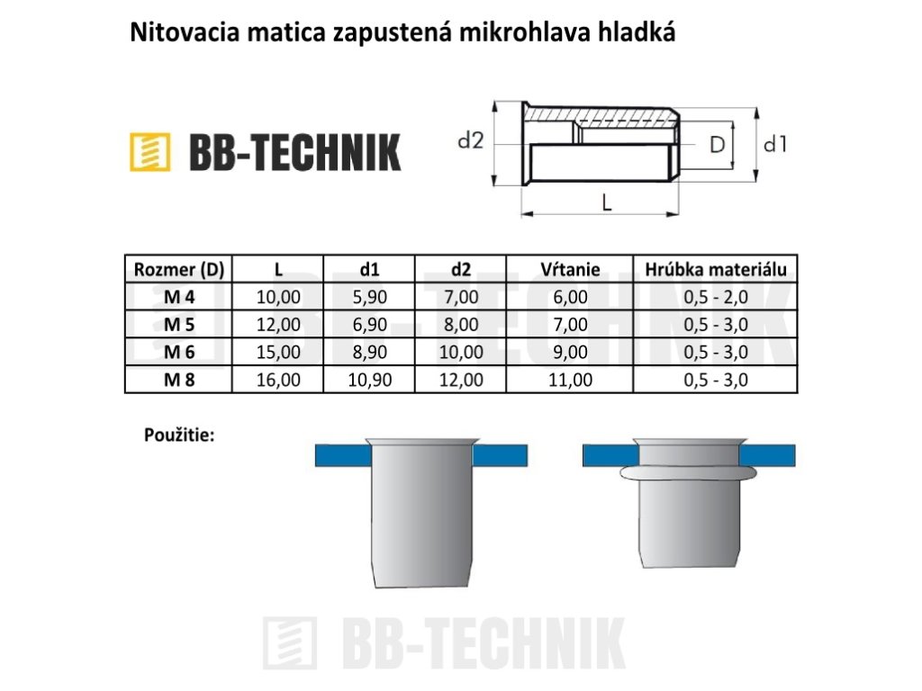 Nitovacie matice s mikrohlavou sa používajú na uchytenie metrického závitu do tenkostenných materiálov, resp. na vytvorenie závitovej vložky na tenkom materiály.