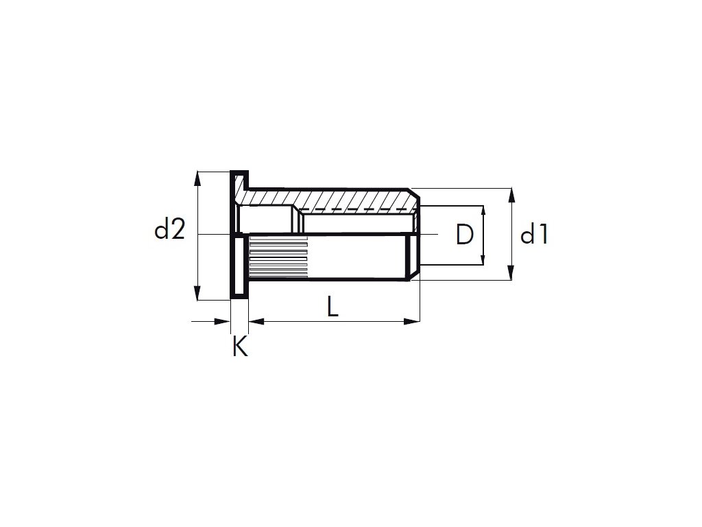 Nitovacia matica M 8 NEREZ A2 plochá ryhovaná pre hrúbku materiálu 0,5-3,0mm