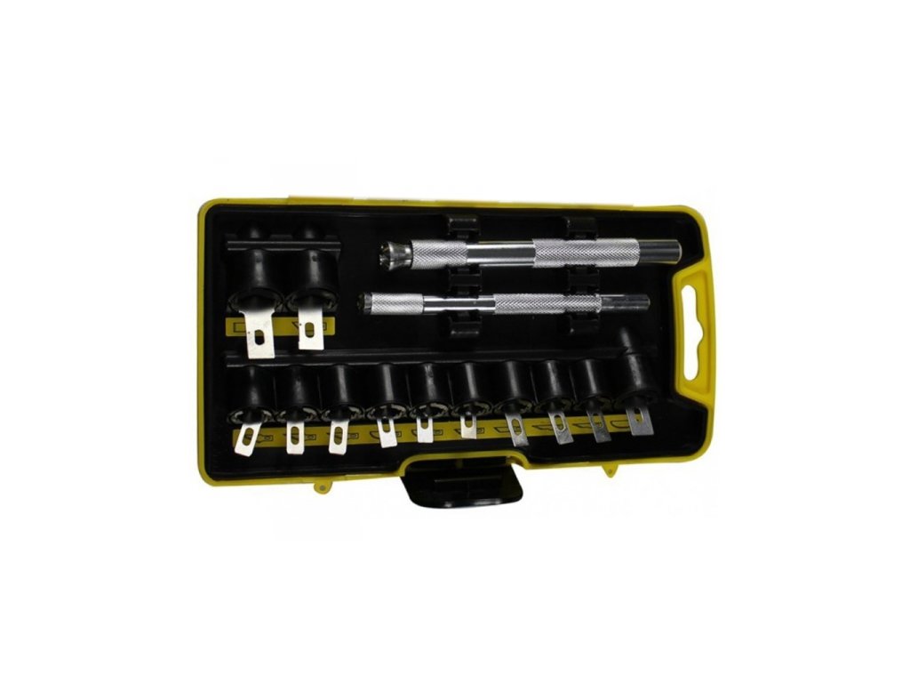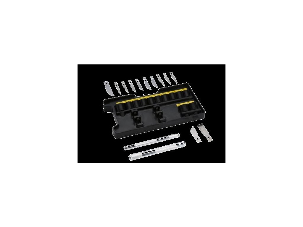 - obsah súpravy: 2x rukoväť skalpela, 3x čepeľ 11-221, 2x čepeľ 11-115, 2x čepeľ 5mm s uhlom 45 stupňov, 2x čepeľ 4mm, čepeľ 11mm oblá, čepeľ 11mm, čepeľ 11mm dlátovitá