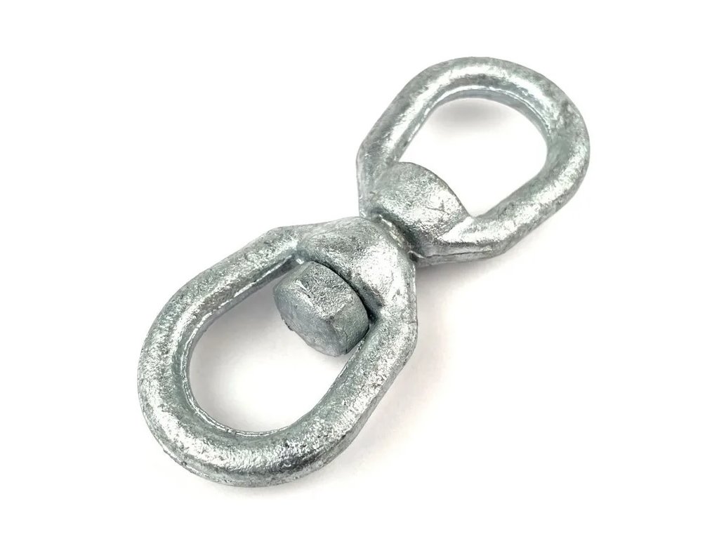 Otočný oko je vyrobené z pozinkovanej uhlíkovej ocele a je navrhnuté na použitie ako spojovací článok medzi dvoma lanami alebo reťazami.