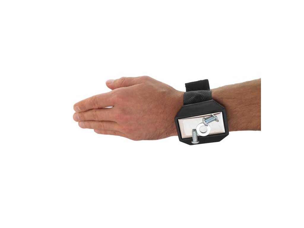 Magnetický náramok na ruku. Praktická pomoc pri práci so spojovacím materiálom.