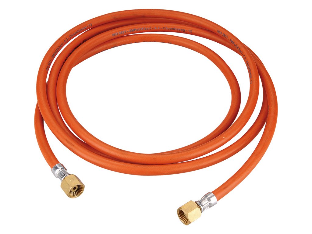 Plynová hadica 3m, 2x závit G 3/8". Vhodná na použitie na propánbután, zemný plyn, metán, propylén. Prevádzkový tlak je max. 2MPa (20 bar), prevádzková teplota -30 až + 60°C.