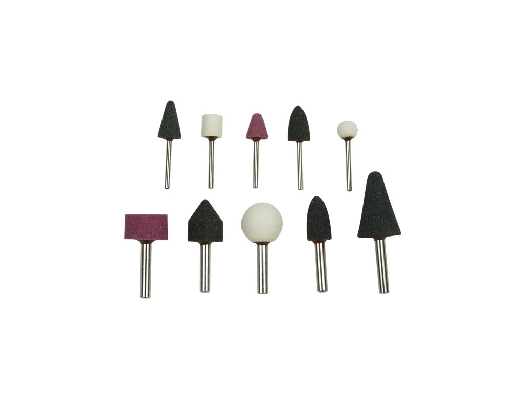Brúsne telieska 10-dielna sada, stopka 5x pr.6mm + 5x pr.3mm, max. otáčky 12500min-1.
