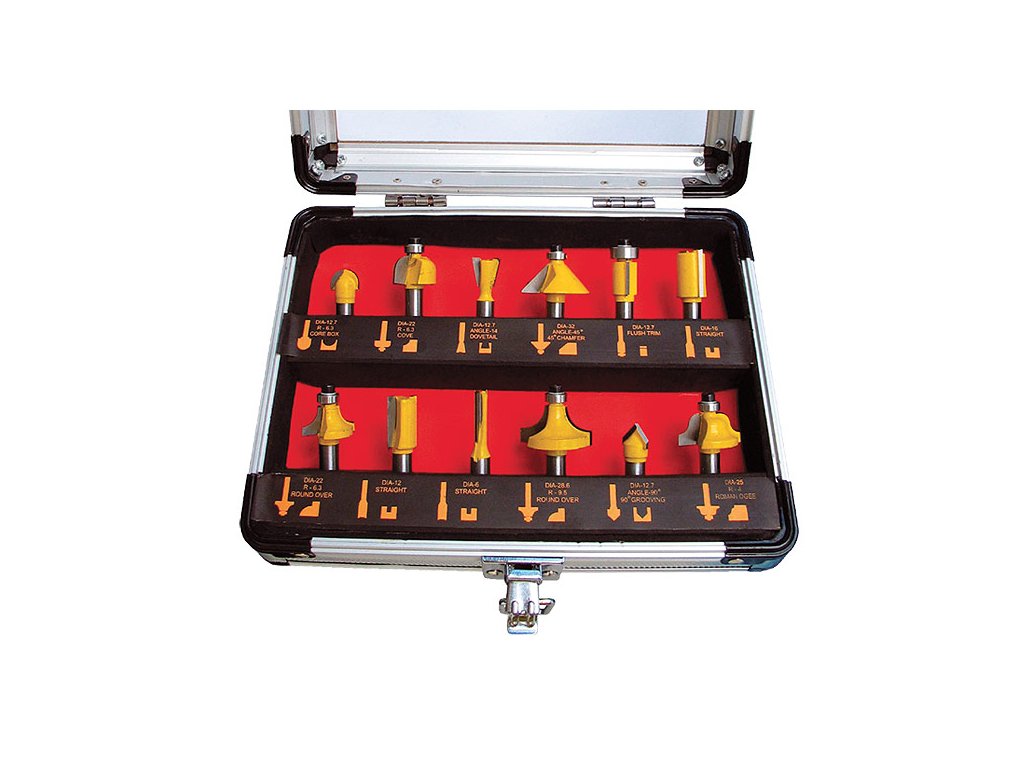 EXTOL Frézy na drevo HSS s SK plátkami sada 12 dielna kovové púzdro