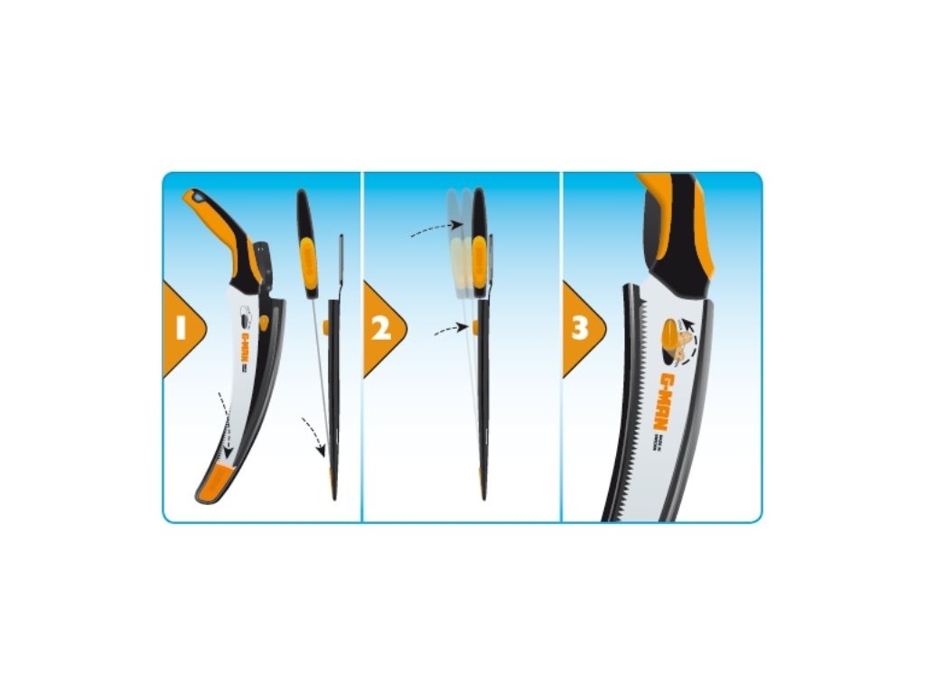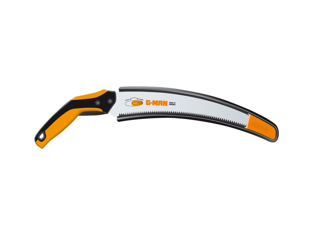 Píla na stromy s puzdrom, navyššej kvality od Švedskeho výrobcu G-man. Profesionálna zakrivená prerezávacia píla s mimoriadne ostrým 3-krát brúseným ozubením. Dodáva sa s 2-kompozitnou rukoväťou v kombinácii s jedinečným patentovaným puzdrom.