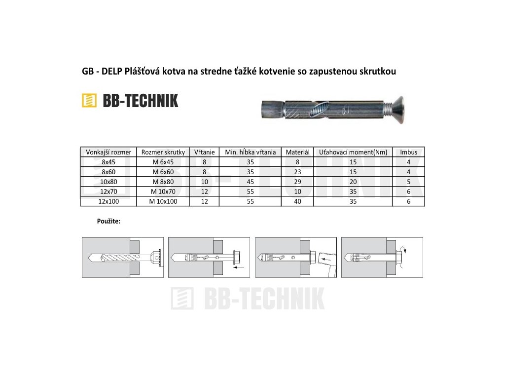 GB DELP 8 M 6x60 plášťová kotva ľahká zápustná hlava