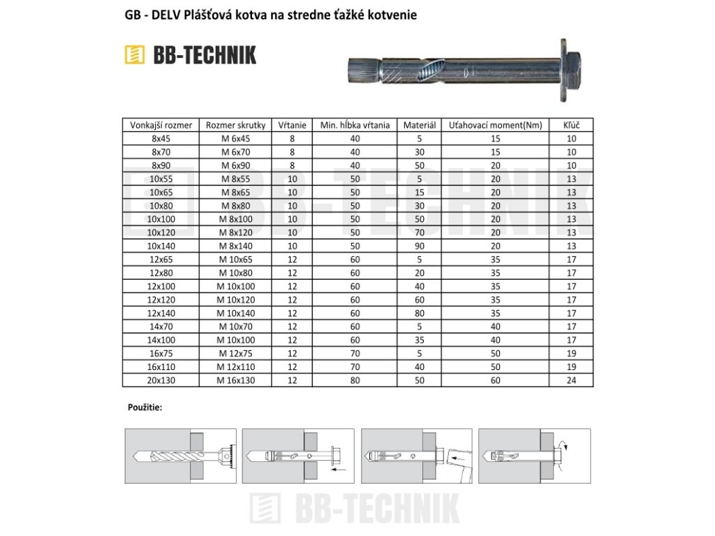 GB DELV 10 M8x55 plášťová kotva ľahká