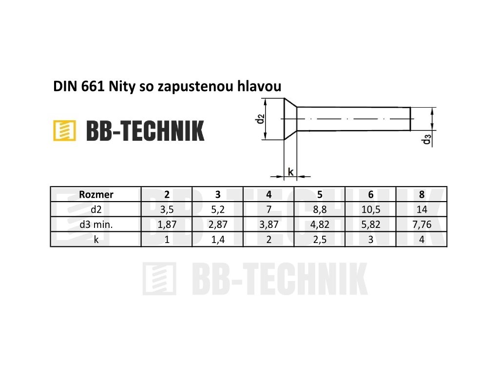 Kategória: | Plné rozklepávacie nity so zapustenou hlavou DIN 661 |