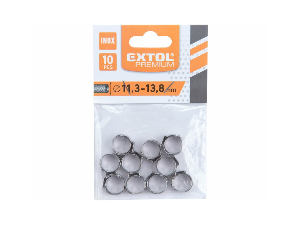 EXTOL Spony na 1/4" pneumatickú hadicu, 10ks, Ø 11.3mm - 13.8mm, nerez