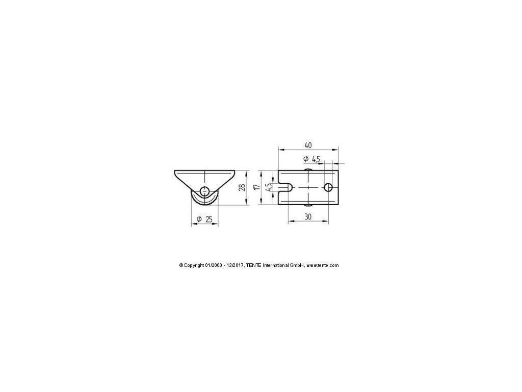 TENTE Koliesko prístrojové pevné, 25x13mm, platnička, čierne, 25 kg