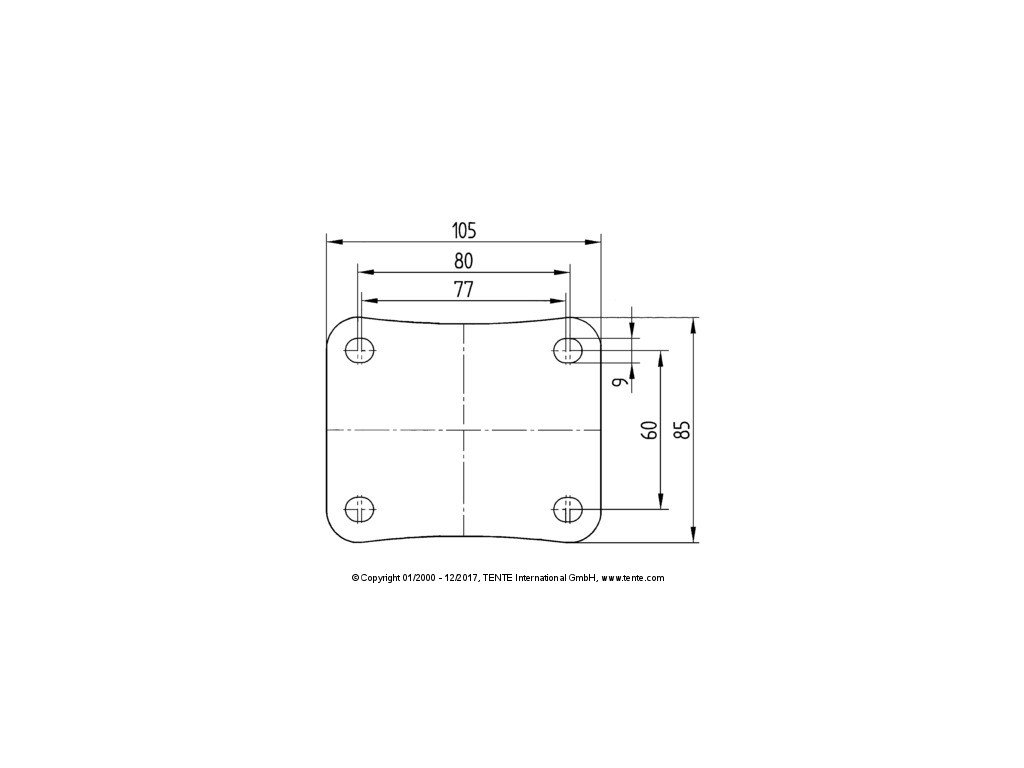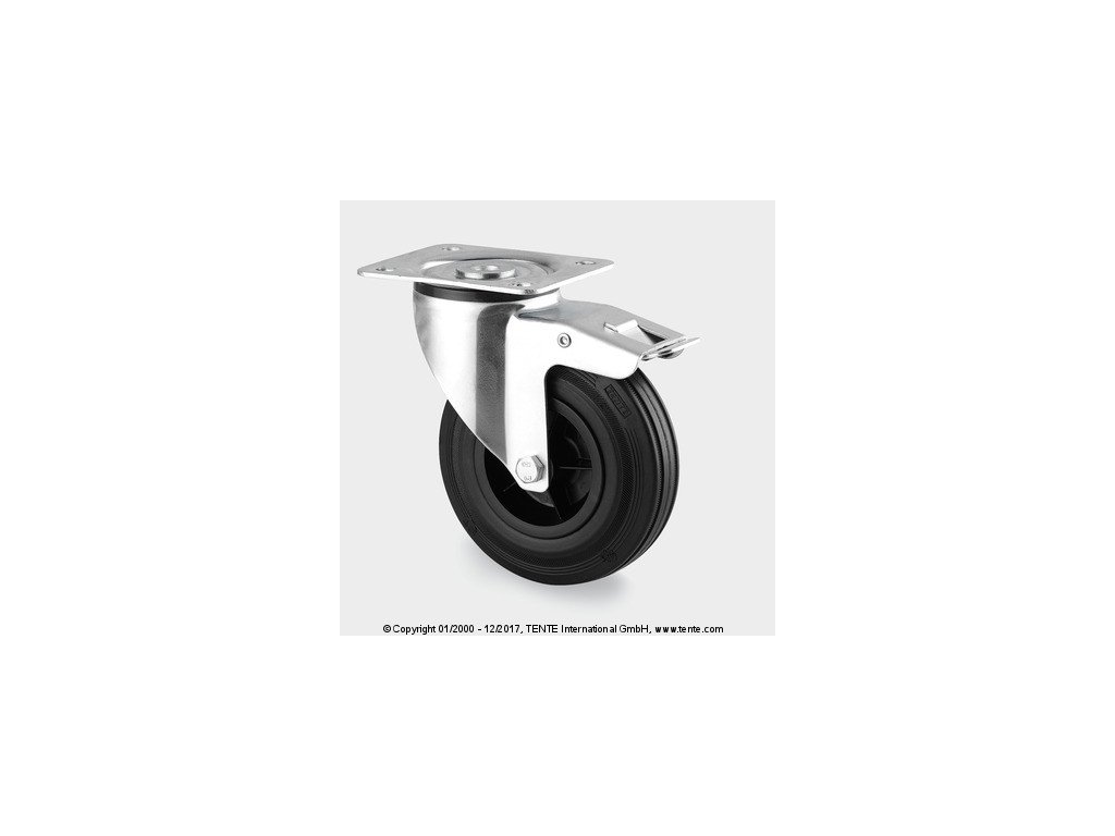 TENTE Koliesko transportné, 80x37 mm, otočné, platička+brzda, čierne, 70 kg