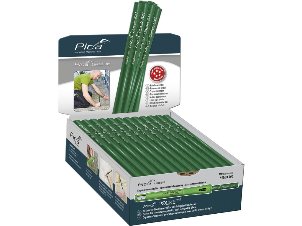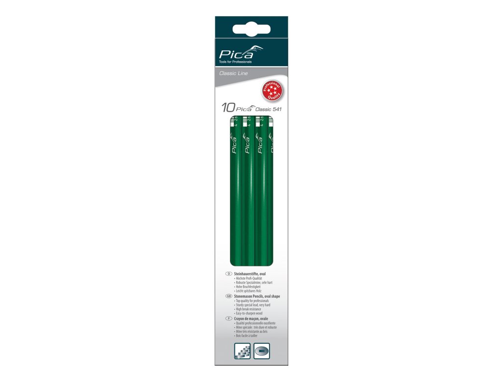Profesionálna ceruza vhodná pre kamenárov, s tuhou tvrdosti 10H, odolná voči zlomeniu.